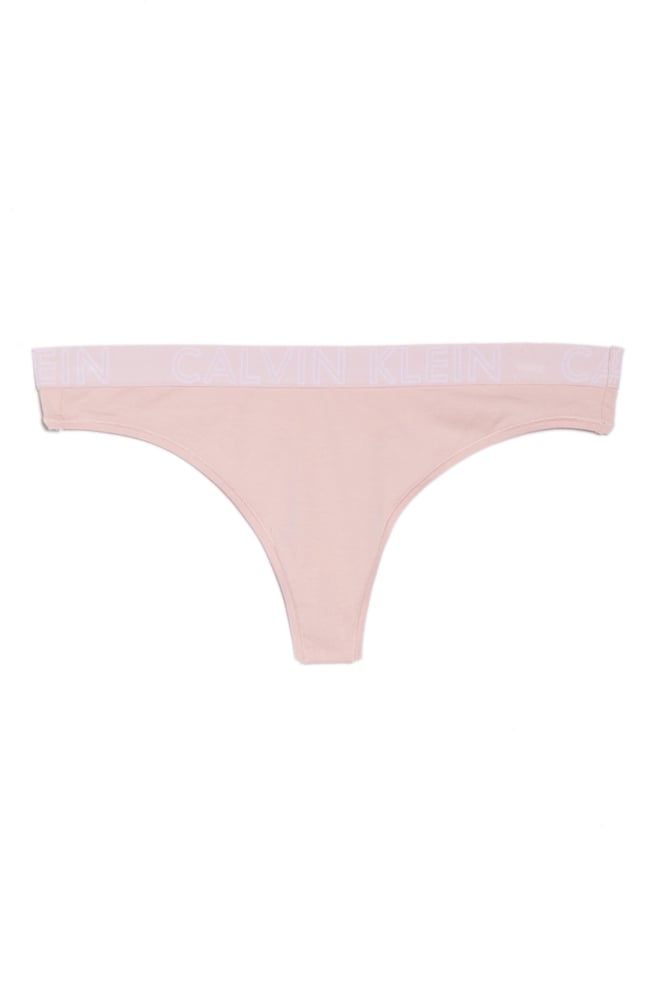 The lightweight cotton thong features a wide, Calvin Klein branded elastic waistband for a modern, sporty look. Thong panties provide minimal rear coverage and a sexy low-rise fit. Made of knit cotton and elastane. Exposed elastic waistband with knit-in repeating Calvin Klein logo. Four-way stretch for fit and comfort. Low rise. Minimal rear coverage. Sewn-on elastic along leg openings to maintain fit. Knit-in cotton crotch for comfort.